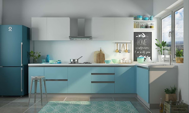 L formed kitchen that clears a path for a huge machine like your cooler without removing valuable floor space. The ideal kitchen plan for a helpful work triangle that takes into consideration more than one individual to be in charge .Spacious cupboards with off-white glass entryways above and a scope of strong entryway pantries underneath keep all your kitchen basics inside close arrive at An amazing plan that permits all the common sunlight in your kitchen directly through.
